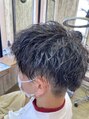 ツーブロックにカット。トップのボリューム落としお手入れ簡単なツイストパーマオススメです。