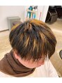 メンズのハイライトスタイル!レッド系の暖色でONカラーしています!
