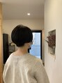 ちょっぴりモードなワンレンショートボブです。わざと重ためにした直線的なラインと後頭部の丸み襟足の質感等…ごまかしの効かないバランス。高いカット技術が必要なスタイルです。