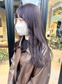 透明感グレージュカラー。ワンブリーチしています。ほんのり紫味のあるグレージュカラーなので色落ちもきれいに落ちていきます!髪質によってはブリーチなしでできるカラーです!