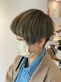 顔まわりはふんわりマッシュ感を残してかっこよさと可愛らしさを楽しめるショート。襟足と耳周りはスッキリさせて、スタイリングも楽チンです♪色はイルミナカラーのパール系アッシュで透明感を。