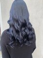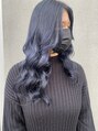 ブリーチありのブルーブラックで、暗髪ですが室内でもしっかりブルー感がでて透明感バツグンのカラーとなってます!