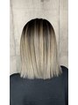 バレイヤージュ ハイライト白髪ぼかしハイライト 切りっぱなしボブ