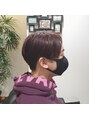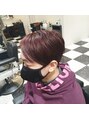 カットカラーで春らしくスタイルチェンジ人気のあるさっぱりとしたツーブロ刈り上げとマッシュ調のスタイルカラーはブリーチ無しでチェリー系のオシャレな仕上がりに