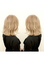 ブリーチ2回したミルクティーカラーです。ダメージを最小限に抑えてます。艶、柔らかさ、透明感、をだしたスタイルです。