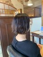 人気のミニボブのパーマスタイルです。中間から毛先にかけて動きのあるゆるウェーブで、毛先にはね感を出す事で軽さが引き立ちます。