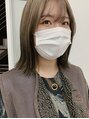 オリーブベージュのカラーです◎ブリーチは1回のベースです!オリーブが赤みを消してくれる色なので、赤みが気になる方おすすめです!カットは毛先に重みが出るようにぱつっときっています◎