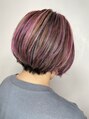 ラベンダーブラウン/ピンクヘア/切りっぱなしボブ