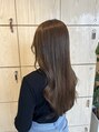 アッシュベージュの透明感と軽さの出るお色味です。赤味を抑えているので柔らかさも出してくれます!トリートメントを一緒にすることでツヤ感と色持ちも◎顔まわりのレイヤーで動きもでてロングでも重く見えません!