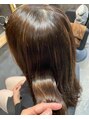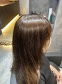 伸ばしている段階なので、ロングレイヤーで動きとまとまりが出るようにカットしましだ。カラーも、ブラウンベースのグレージュに♪