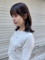 くびれレイヤーミディアム。レイヤーをいれて軽さを出し、外ハネしやすいようにくびれ風に。前髪は流れるようにカット。