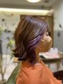 透明感のある明るめベージュカラーにインナーでしっかり発色したパープルがアクセントになって可愛いスタイルです。