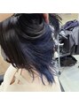 顔周りウルフスタイルとインナーカラーブルー