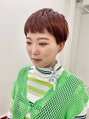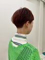 ブリーチしてる状態で濃いめのオレンジカラーが可愛い!!前髪のラインとのバランスの良いベリーショートヘア♪