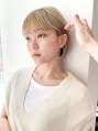 明るめのハイトーンのボブに重めのカットでバランス良く!!耳にかけてもみあげとよりオシャレさを引き立たせてくれます!!是非一度お任せください!!