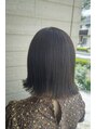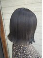 グリーンカラーの特徴は、透明感とスモーキーな質感。肌や髪にフィットしやすいカラーです。切りっぱなしボブは簡単なスタイリング方法で、雰囲気が変えられます。髪型に変化をつけて楽しみましょう!!