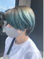 ブリーチ必須のデザインカラー♪根元は暗めのグレー、中間から毛先はエメラルドグリーンのグラデーション裾カラー(^-^)ショートヘアに爽やかカラーが素敵です!