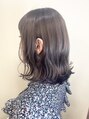 ブリーチなしで柔らかさを表現したラベンダーベージュカラーの外ハネボブスタイル。