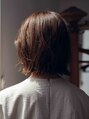 カラーは少し暗めのブラウンで落ち着き感をだしています。前髪はシースルーにすることで重く見えないようにしました。顔まわりはウェーブを入れたので小顔 効果があります!髪を耳にかけることで外ハネに大人っぽさを感じさせるスタイルです!