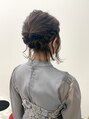 ボブスタイルでのヘアセット。ゆるく後ろにまとめて少し上品な感じに。だけど、ちょっと毛こぼれしてる感じが大人可愛いポイントです。結婚式に参列仕様です♪