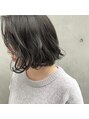 グレージュベースで暗髪だけど透明感のあるカラーに!切りっぱなし・重めボブは軽く巻いても楽しめます!!退色しても赤みが出ないので退色後も綺麗なカラーです!