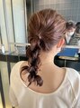 ブリーチなしでワンカラーでオススメ!アプリコットオレンジはファッションにも合わせやすくて◎ご要望あれば簡単なアレンジサービスしてます♪暖色カラー 簡単アレンジ ローポニー オレンジブラウン