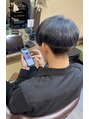 カットはツーブロックマッシュスタイルです。カラーは一度ブリーチをしてからの青系カラーを入れています!色落ちの過程も楽しめるカラーです。