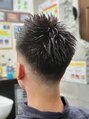 もみあげ、襟足を薄くし刈り上げたスタイル。スタイリングが楽なツンツンヘアーです。メンズカット / 眉カット / 顔剃り / フェード / 刈り上げ / 石神井公園 / 大泉学園 / 練馬高野台 / 床屋 / マッサージ / スキンフェード / BARBER / 上石神井 / 波巻き