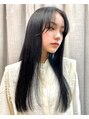 黒髪きれいなストレートスタイルに前髪センター訳を組み合わせたクールな印象のロングスタイル