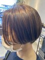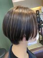 丸みショートボブ◎ナチュラルなハイライトで動きがでるようオイルでスタイリング◎前髪なしで大人っぽい雰囲気に◎