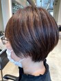 女性らしい丸みのあるシルエットがかわいいショートヘア。軽すぎるボーイッシュなショートが苦手な方にもおすすめです。ハイライトの効果で立体感も◎