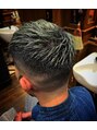 カラーが残っていたので、長さを残し、ブリーチ毛の部分は毛量を取りすぎないように仕上げました。重さを残すことで、束に太さが出て、よりツヤのある整髪料が際立つようになります。フェードとはヒゲはおしゃれな雰囲気を醸し出すために入れてみました。