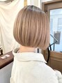 ベージュカラー×ボブスタイル。2~3回のブリーチが必須です。カットはほんのり前下がりのまとまりやすいシルエットです。