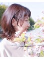 サイドの髪をパツンとカットして、印象的なカットに!全体的にレイヤーを入れて軽やかな印象に!カラーは、全体にハイライトを入れた上にシルバーを入れて、さらにその上からパープルカラーを忍ばせたトリプルカラー光の加減で違うカラーに見えます!