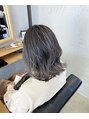 細かなハイライトを入れたアッシュグレー。太すぎないハイライトなので派手すぎず、色落ちしても綺麗な色を維持できます。ベースは暗めで染めることで、根元のプリンを目立たせなくすることも可能です。デザインに関してはご相談下さいませ。