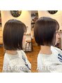 顔まわりにピタッと沿うボブが可愛い。多毛細毛、はねやすいことにお悩みでした。しっかりと収まる!