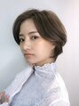 ひし形シルエットの大人ショートボブ。輪郭や顔型カバー効果もあり、特に面長さんにオススメ。サイドに繋がる長めの前髪で大人の上品なスタイルに。