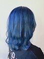鮮やかなブルーカラーを2回ブリーチした髪に乗せてます。