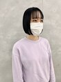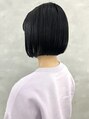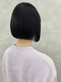 黒髪のやや前下がりぱつっとボブ。ぱつッと切りながらも自然に内に入るようにカットしているので乾かすだけでキレイなシルエットになります。