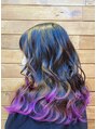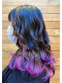 ヴァイオレットの裾カラーです。青みが強い紫が好きな方にオススメです!個人差はありますが、ブリーチ2回以上を推奨しています。トリートメントも一緒にするとよりダメージレスに仕上がります◎