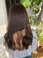 カット 縮毛矯正 グリッターボンド トリートメント髪が伸びて 癖があるところのみ縮毛矯正仕上げ 縮毛矯正かけていないところコテで巻いてあります