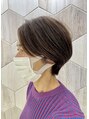 ケアブリーチで細いハイライトを入れ、柔らかい色味をプラスしました!襟足をスッキリとさせた大人ショートボブです★