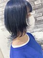 気に入ったスタイルは【ブックマーク】ボタンを押してご来店時ご提示ください☆ツインターボネイビーブルーくびれミディアムウルフ