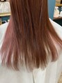 お客様の要望で軽めのスタイルになります。カラーはピンクのインナーカラーを入れた明るめのスタイル。