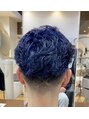 フェードカットにラインを入れ、さらにサファイアカラーで安定にカッコ良くきまります!