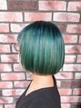 ブリーチ複数回でつくる♪根元はブルー、毛先はターコイズブルーのやんちゃカラーなボブスタイルです!
