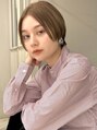 フラットめの少し前下がりのショートボブです。少し前下がりにする事で顔をシャープに見せる効果があります。耳掛けして2wayでお楽しみ頂ける飽きないスタイルになっています。