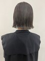 ハイライトを全体にいれて寒色系アッシュブルーカラーをいれたぱつっとボブスタイルハイライトの印影が自然で透明感がでます。