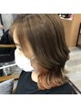 #ミディアム#外ハネ#ワンホン#インナーカラー#ケアブリーチ#オレンジ#グレージュ#イルミナカラー