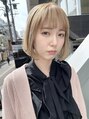 ショート、ショートボブから伸ばしていくのに可愛いぱつっとラインで乾かすだけでキマるミニボブは、内巻きワンカールでフレンチガーリーなスタイリングも!ブリーチしてヌーディベージュでウエットな質感にもぴったり。ボブもぱっつん前髪で大人可愛く!